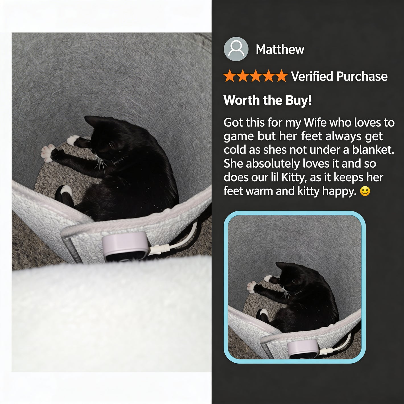 Bought it for my home office but my cat took over right away. Heats up fast and the auto-shutoff gives me peace of mind. Now I need a second one.